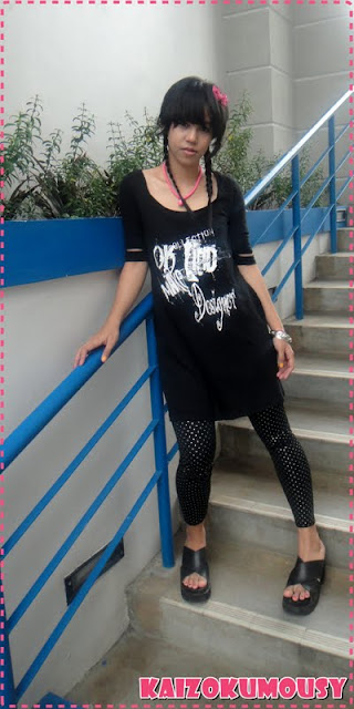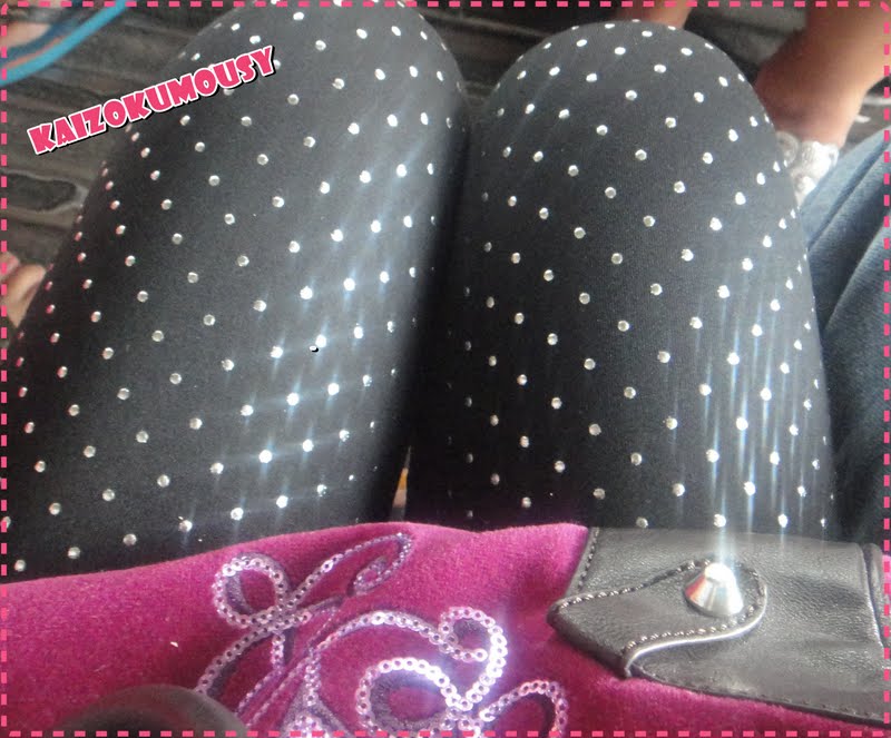 I’m wearing this leggings~with silver studs.It looks punk and so lady Gaga~ (because it’s shiny)~hehe