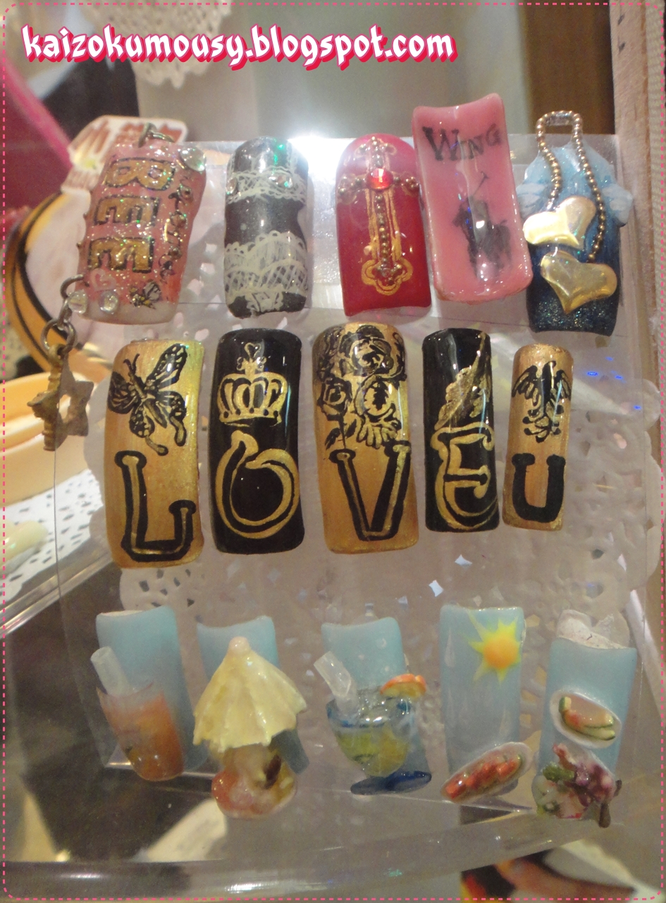 I just want to share with you these nail art design samples that caught my attention.I saw these just outside a nail salon in HK. Their creativity and effort on designing the nails inspired me to design my own nail too. And even though  you’re not a fan of nail art designs, I know for sure you would love to see them work.^o^