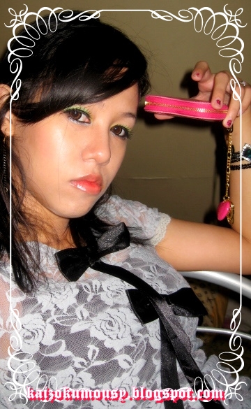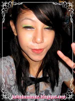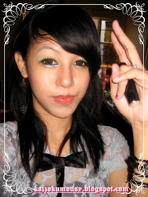 Actually the contacts that I've been wearing all the time is not brown though, it's Giordano Everfresh Blue (Click!) and also I used glittery silver eyeshadow instead of white eyeliner because I don't have any white eyeliners at home.. o(;A;)o *cries*