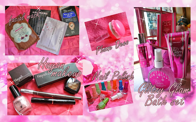 I also got glitzy glam bath gel etc. as a gift, which I really love because it smells like strawberry.^^