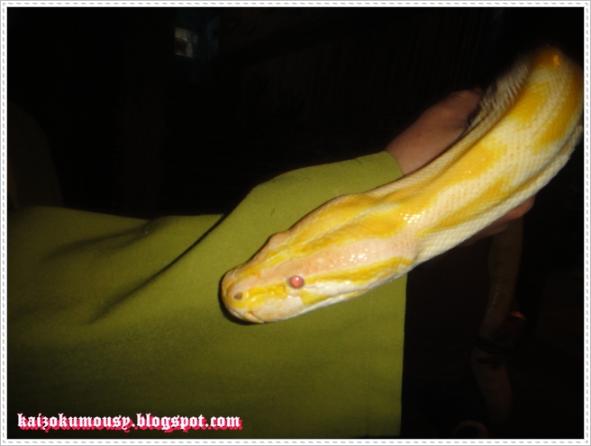 This is the first time I hold a huge snake and I was so scared!>.< It’s sooo heavy too. The good thing is that, it doesn’t smell.XD